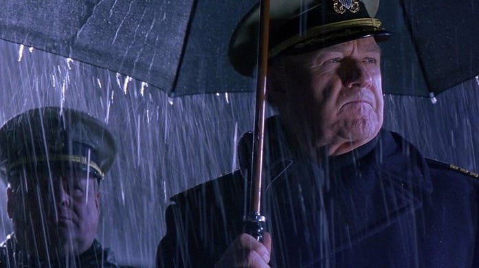 If Crimson Tide were a story about law, it would end with relief of command, arrest, court-martial, and removal. It does not. Instead, it ends quietly. Ramsey departs with dignity. Hunter is vindicated, but the institution moves on as if the episode can be absorbed.